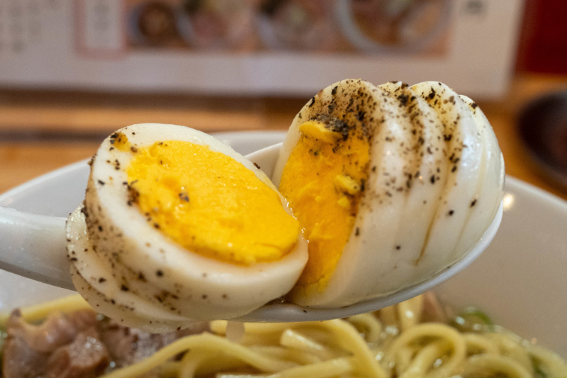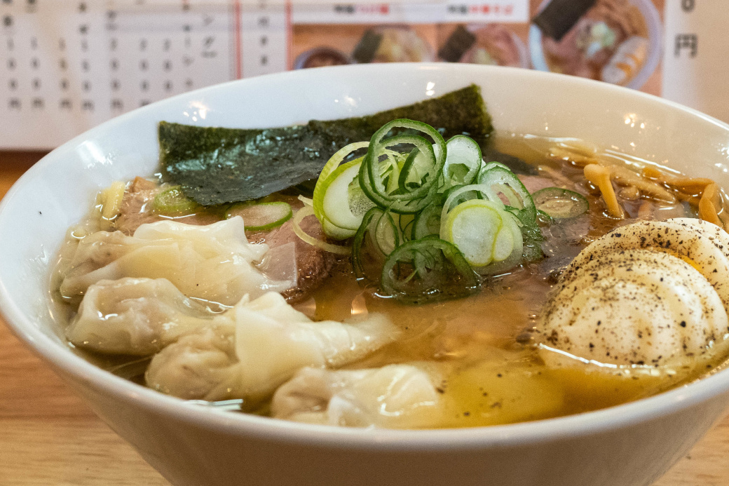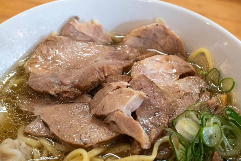 ゆで卵 1人1個まで 無料 岩海苔 100、ネギ・辛ネギ 150、ワンタン 4ヶ 200、 肉増し(煮豚) 200、吊し焼きチャーシュー 200 ライス 150・半ライス 100 3種の炭火炙りチャーシュー丼 ①肉盛り ②こんがりチーズ ③ねぎマヨ 480・ミニ 280 [変更点など]