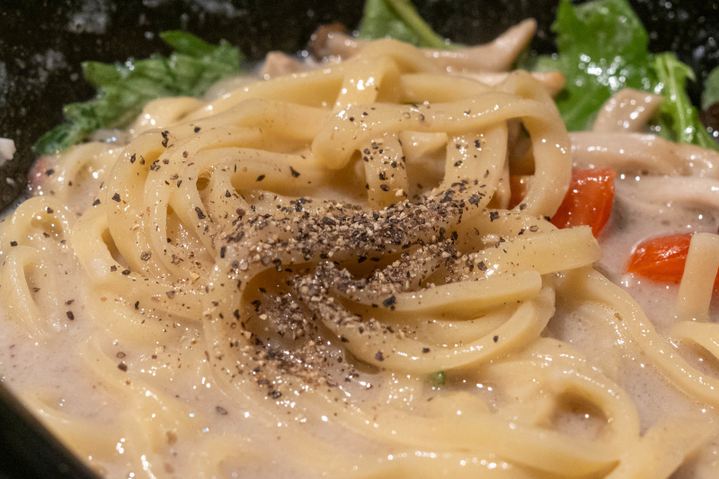 決して仲良しこよしの馴れ合いイベントはイヤなので参加する時には、必ず心の中で思うようにしてます。 『アンタイが1番美味しかったと言われたい』 たぶん参加してる店舗の店主達は、僕みたいに声に出さずとも同じ事を思ってるハズです。 強者揃いのお店が参加しているので、片手間でやっても勝てません。 だからこそ今回もアンタイは本気で作りました。 そんなワケで、きのこポタージュのスープの秘密を話します。 しめじや舞茸、エリンギなど数種類のきのこと香味野菜でグラッセします。 牛乳を使い程よいポタージュスープを作りますが、これだとただのパスタになってしまいます。 ココまでても普通に美味しいが… そんなのつまらない。 せっかくラーメン屋が作るんだったら、ここまでしちゃうんだよってのが今回のバカなトコ。 大量の豚頭とゲンコツを10時間焚き上げ、そのまま限定で出せるくらいの濃度と旨味が詰まった豚骨スープと先程のポタージュスープをアンタイの黄金比で合わせて出来上がったのが、今回のきのこのポタージュスープになります。 ぶっちゃけ、いつものつけ麺用で焚いている濃厚スープでも似たような味は作れます。 ただ、やはり豚骨由来のマイルドでクリーミーな強い旨味をどうしても入れたかったのと、普段のアリモノを使ってイベントに参加しても、お客さんに失礼、尚且つ強いインパクトは残せないと思い、ここまでやる事にしました。 味は好みがあるので、万人に受ける事は難しいですが、自分が納得して作り上げたモノを提供出来るのはラーメン屋冥利に尽きます。だからこそ食べて頂きたいし、関わってくれた方達が少しでも笑顔になって欲しい。 |