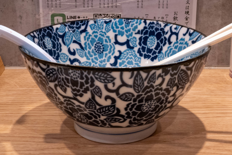 (限定)冷しゃぶ担々麺 [2024/8/8] ¥1100 2024/8/1~31 [TOKYO 042 RAMEN-RALLY] (西東京のラーメン店8店による食べ歩きイベント)の限定メニュー POPには 『自家製ラー油と花椒を使用したピリ辛スープ ツルモチ平打ち麺と夏らしいトッピングで仕上げました』 とある 良く冷えたスープは、ナッツなどのまろやかさがあり、ラー油の辛さと花椒のシビレ感で引き締まっている。 トッピングのラー油でさらに辛さが増してインパクト大。 スッキリとして最後まで食べやすい。 麺は平打ちストレート、180g。 水で〆てあり、ツルツルと滑らかでしっかりモッチリとした食感。 スープとの相性が良い。 (「鈴めん」のはず) チャーシューのかわりに、冷やし豚しゃぶで。さっぱりと食べられる。 メンマは細切りで、コリコリとした食感。 その他の具は、ナルト。 薬味は、水菜、ナッツ。 辛くて夏らしい一杯! |