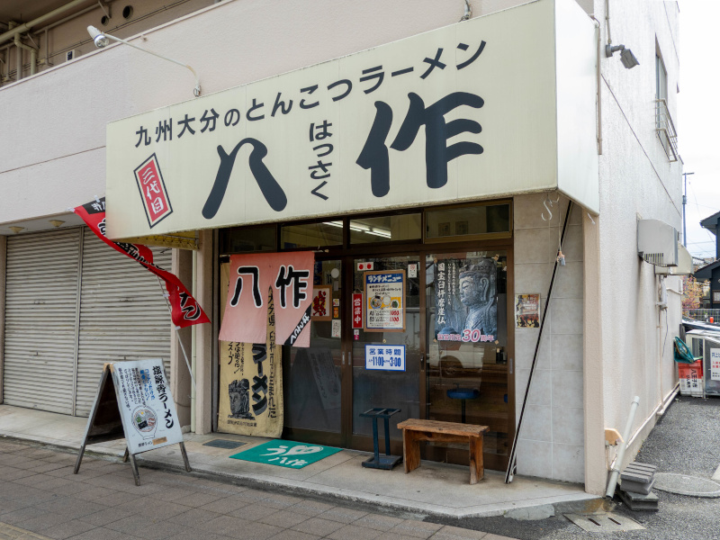 [2026/3/17] 八作ラーメンについて ★昔のまんまの豚骨ラーメン 初代八作店主が豚骨ラーメンの発祥の地といわれる[*]福岡県久留米市「西陽軒」(屋台)にて修業の後、昭和32年大分県臼杵市において「八作」を開店しました。ひと口に60年前といっても生活環境は現在と全く異ります。飲食店も例外ではなく当然ガスなどは無い訳で、豚骨スープを作る為に練炭やマキを使用したそうです。ドンブリを洗うにも大鍋に湯をわかし脂汚れに対処したそうです。大変な時間と労力がかかり ます。