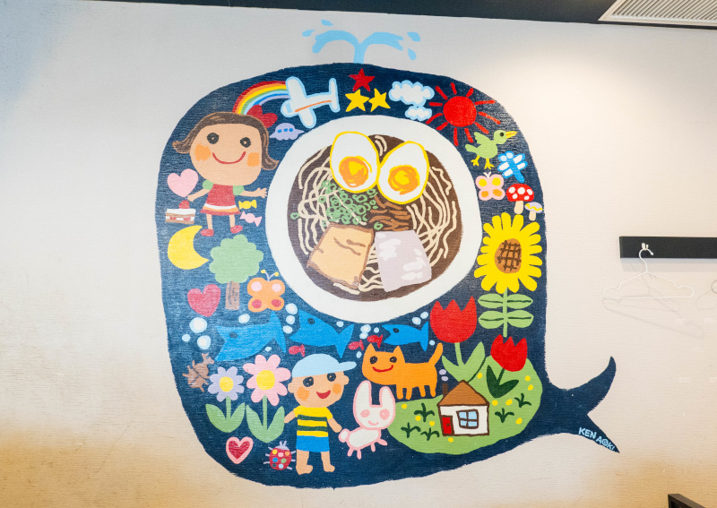 ↑[2025/11/5] ↓[2018/9/25] 壁にあるくじらのイラストは、 数多くのラーメン店のロゴを手がけるデザイナー 青木健氏の作。 『くじら食堂』のロゴも同じ。 ラーメンWalker TV2 より