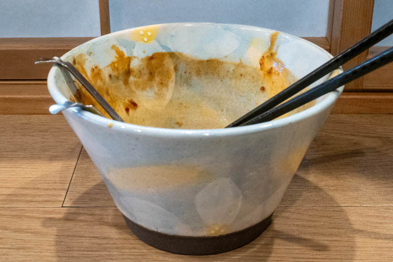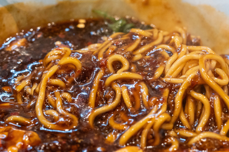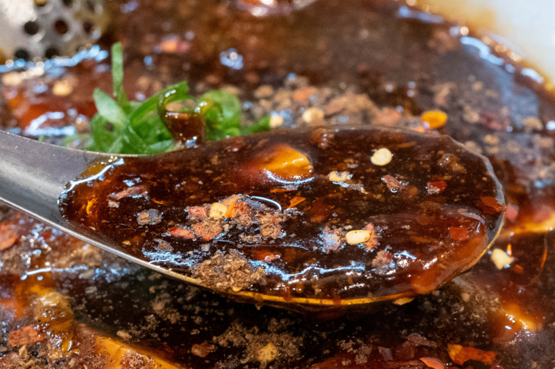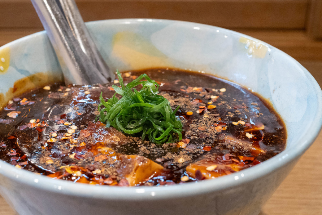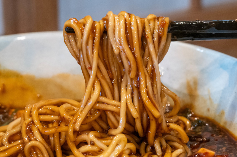 ドロッとしたスープが麺に絡みつく |