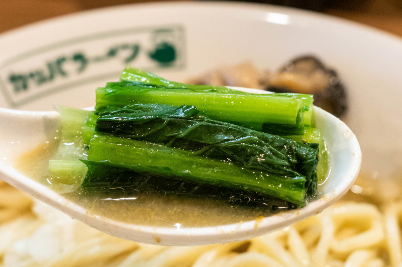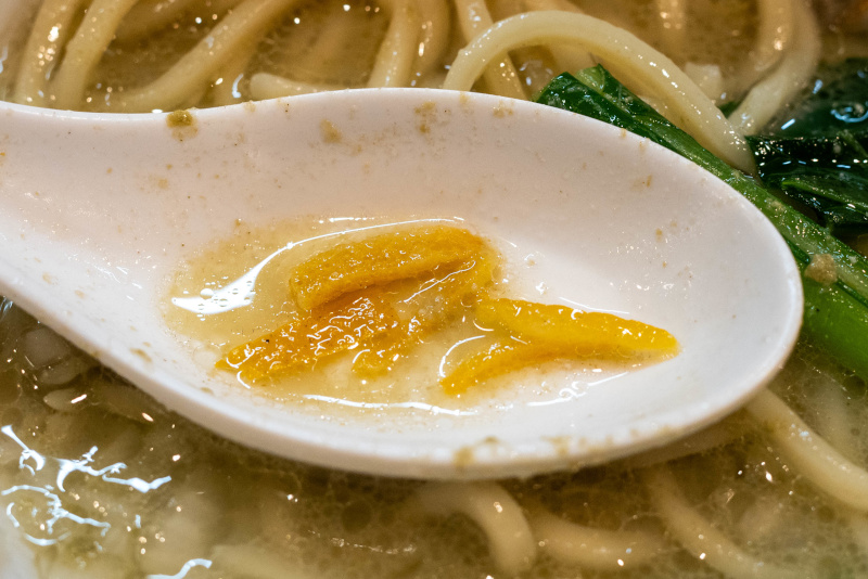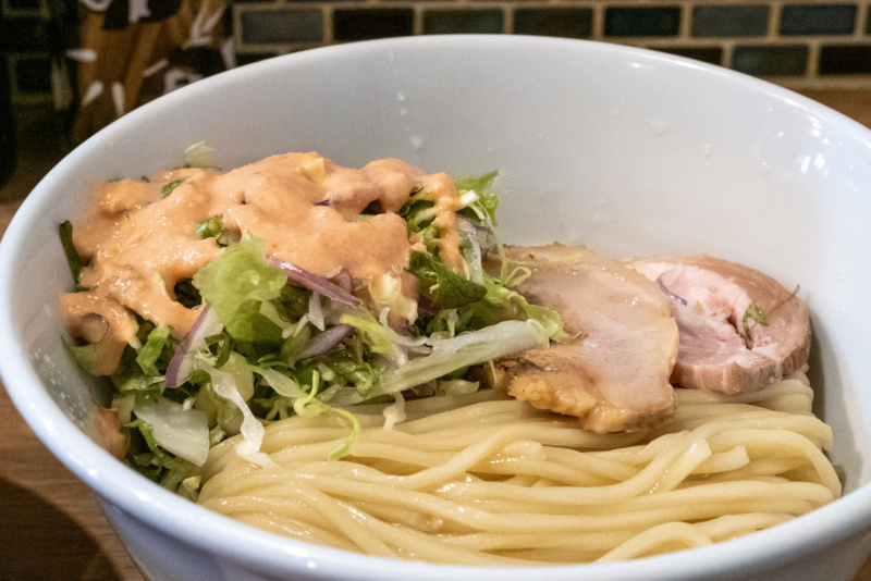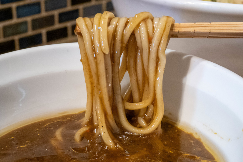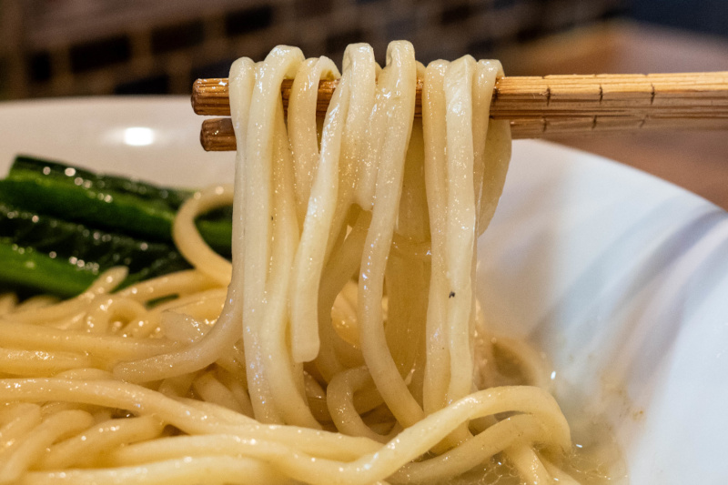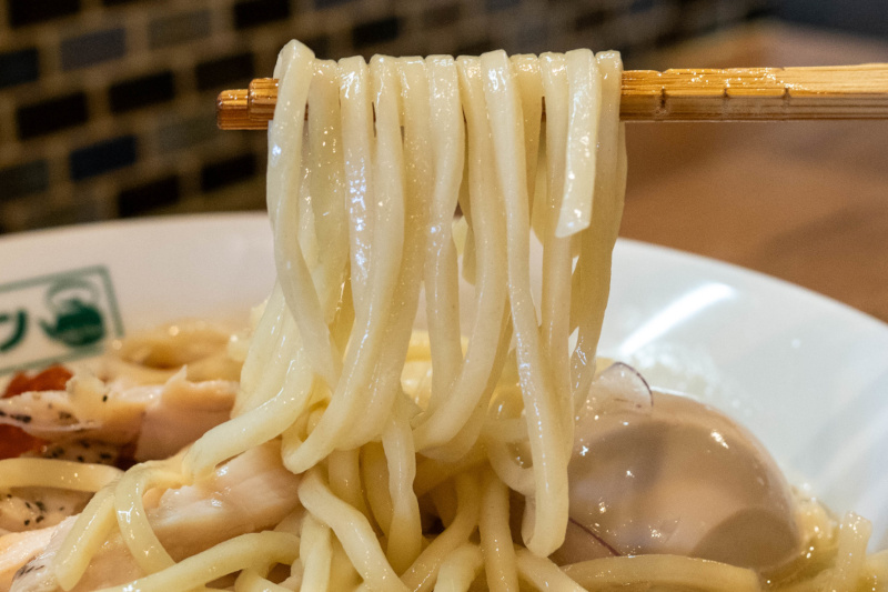 ツルツル、もちもちの太麺がよく合います。 |