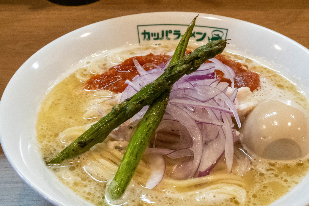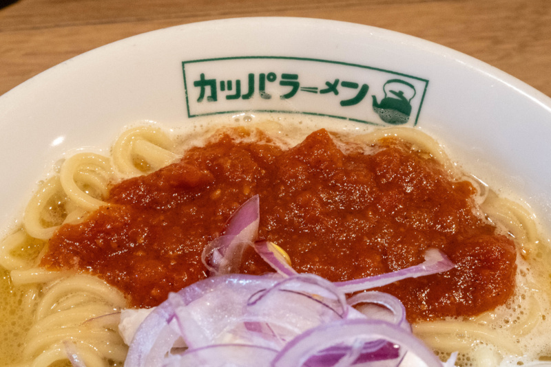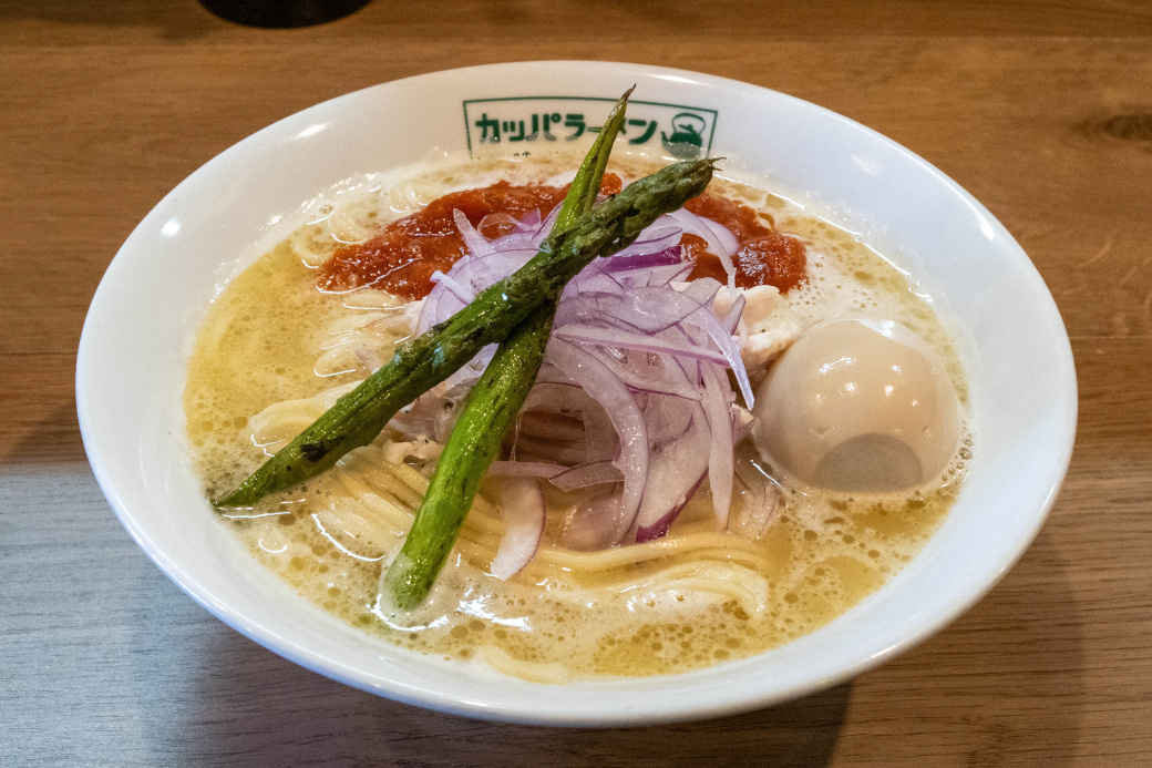 [限定] カッパラーメン チキントマト味 (+味玉) [2026/3/21] ¥1100+¥150 2026/3/19 からの ゲリラ限定メニュー POPより ガッツンガッツン炊いた鶏白湯スープに自家製トマトソースを乗せ、