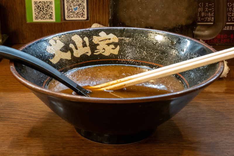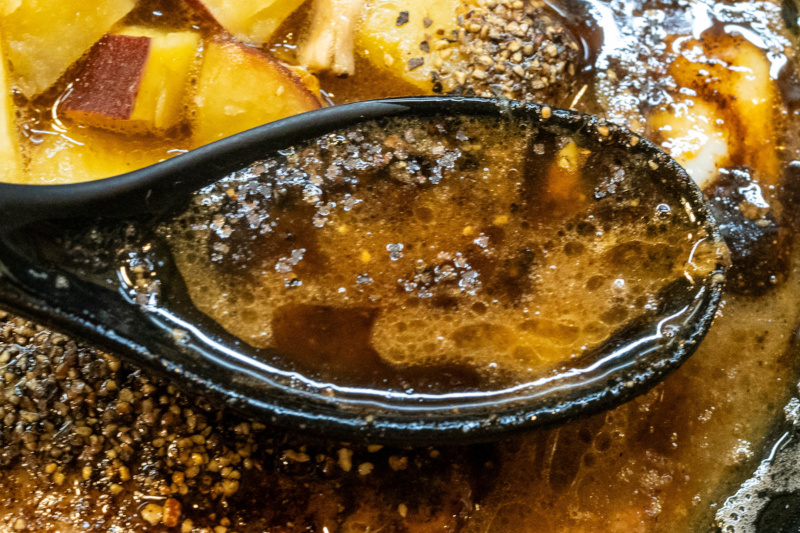 特製黒ダレ(焦がしネギ油)が浮いたスープ |