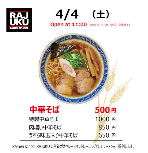 手揉み中華そば うずら味玉入り [2026/4/4] ¥500 + ¥150 公式Xより 明日4日(土)のラ塾のオペトレメニューは「手揉み中華そば」500円