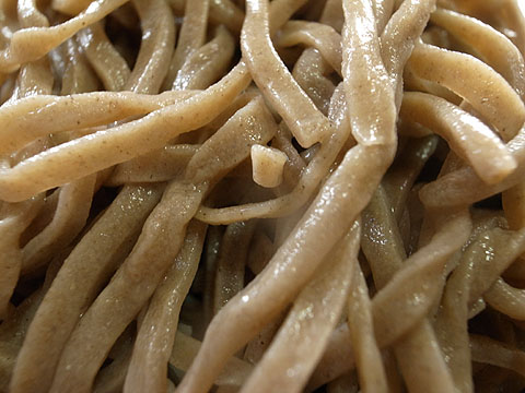 ごわっとした歯ごたえがあり、粘性もある。つるつると啜ることができなく、ワシワシと食べるタイプ。