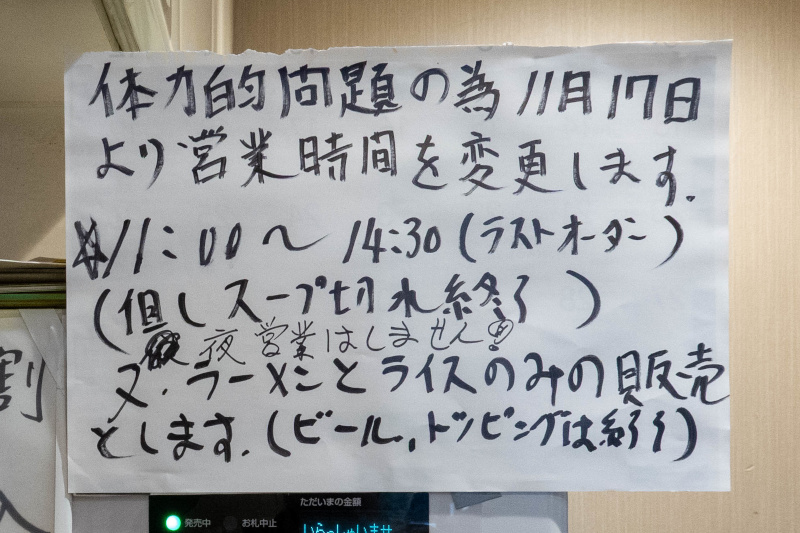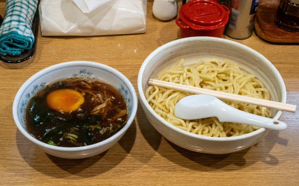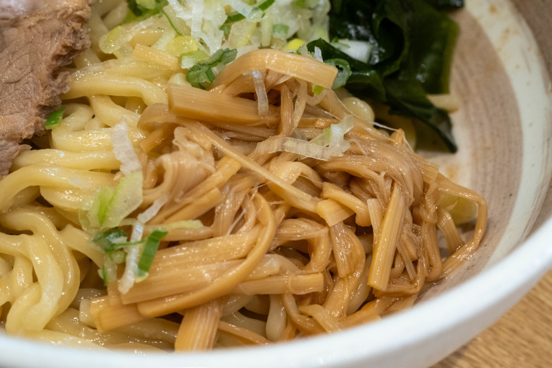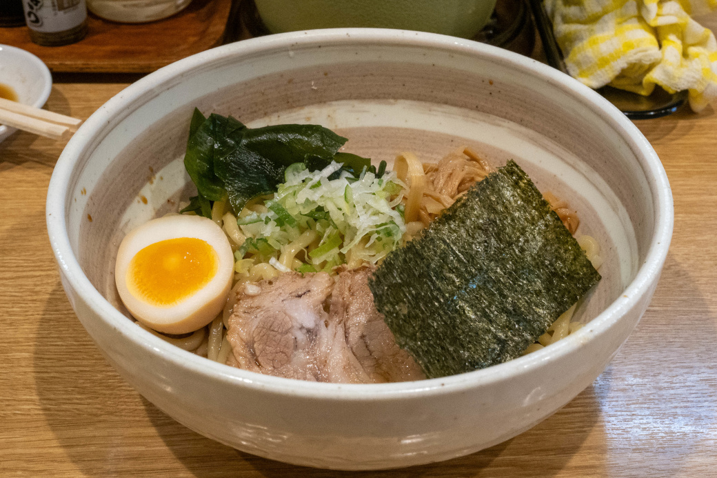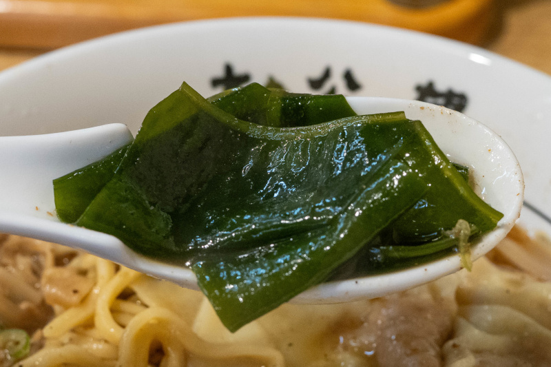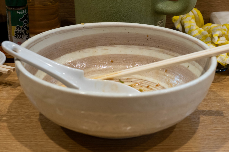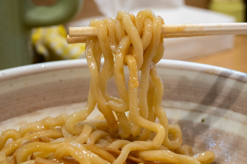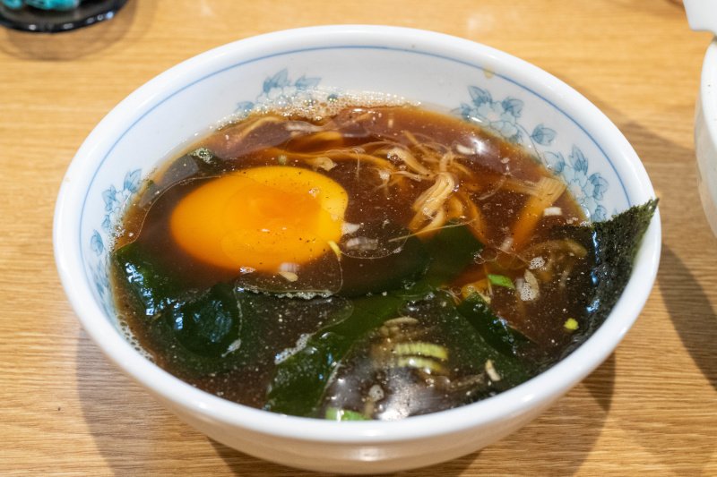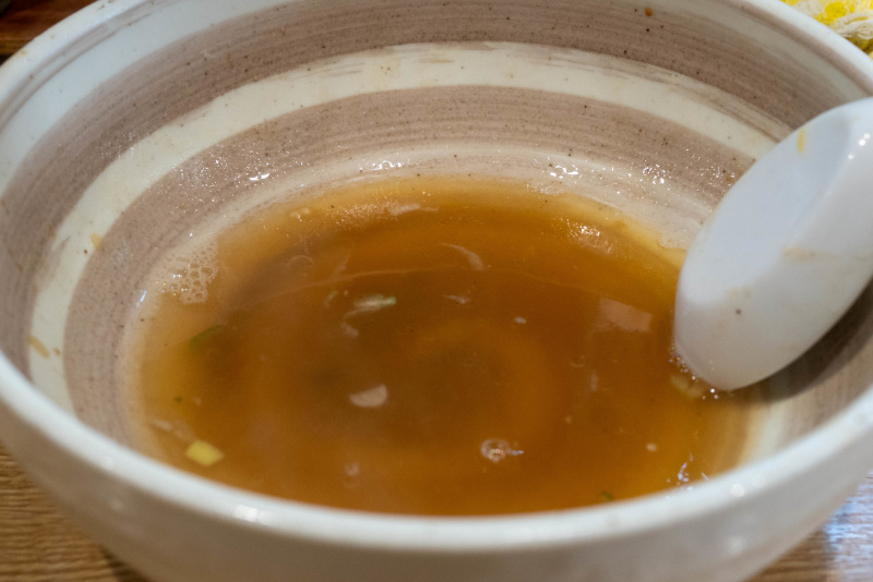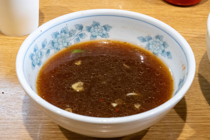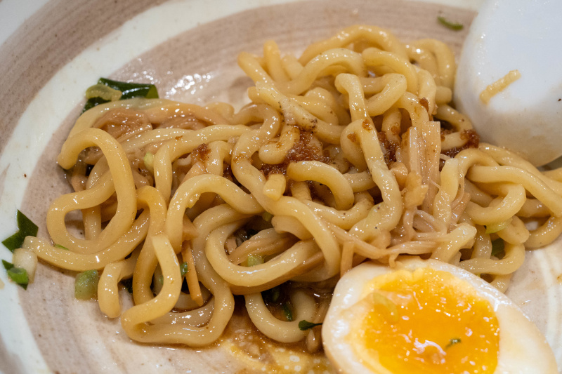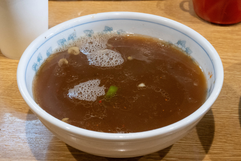 スープがないラーメン、味はやきそばとつけ麺の中間 にんにく入り/なしがありますが、にんにく入りがおすすめ ・食べ方 タレが丼の底にあるので、全体的によくあきまぜて麺が茶色くなったら食べごろです 途中でお酢を入れるとマイルドになります 辛味はラー油を入れたり、茶色い壺の唐辛子を入れて下さい 食べ終わったら、スープ割り(50円)をすると口の中がスッキリします |