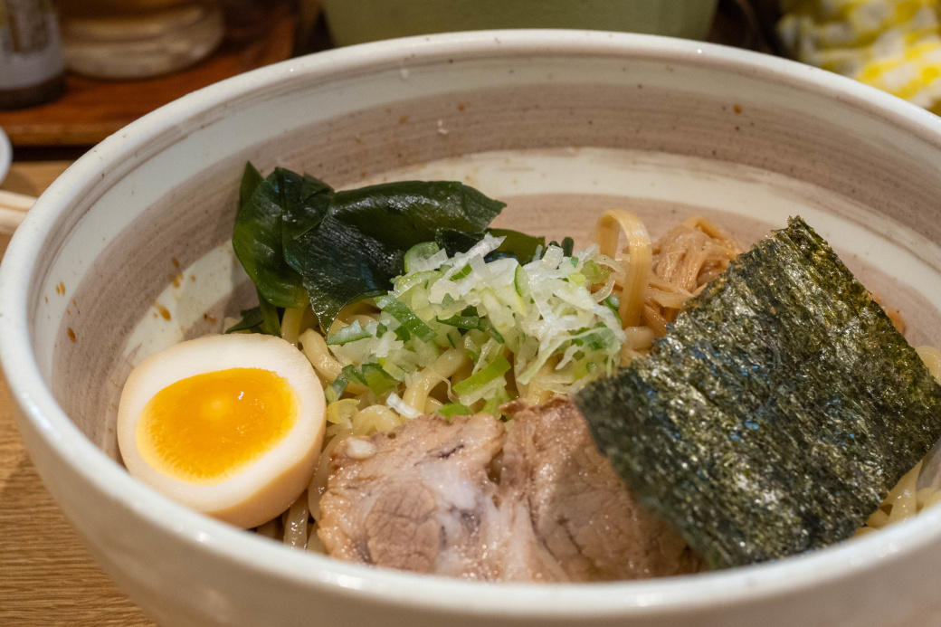 3回、味を楽しめます ①そのままで ②柚子胡椒を入れると味がピリッと締まります ③ごま油で揚げた、ニンニク・ねぎを入れると香ばしくなります お好みでお楽しみ下さい ▶ 正油つけめん