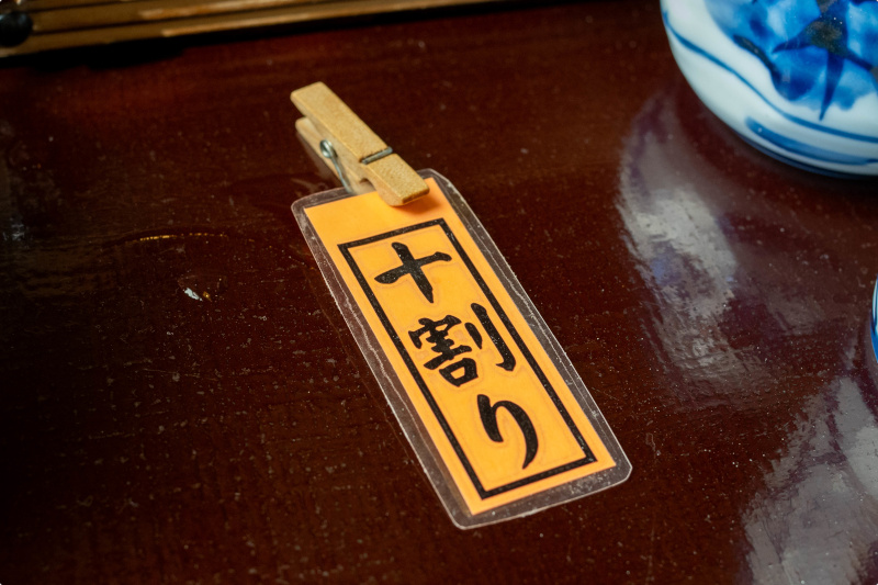 そば粉は長野産をメインに北海道産をブレンドし、石臼にて一回転半挽きした粉を使用した二八蕎麦です