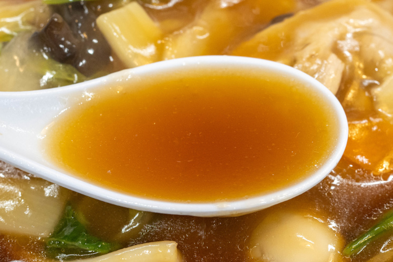 チャーシューは入っておらず、海老、野菜、キクラゲなど |