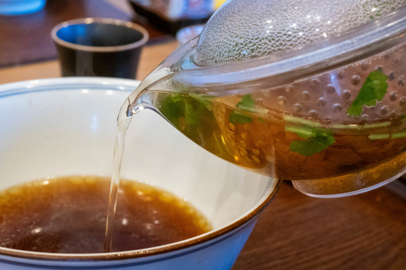 塩らぁ麺のスープを注いで |