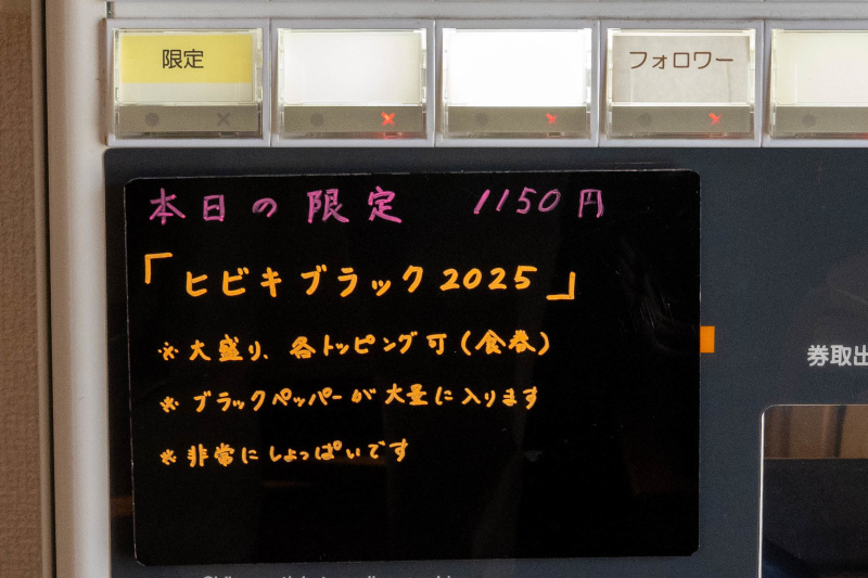 (限定) ヒビキブラック2025 + 小ライス [2025/8/24] ¥1150+LINEサービス 2025/8/22から 70食提供 【お店からの告知(要約)】