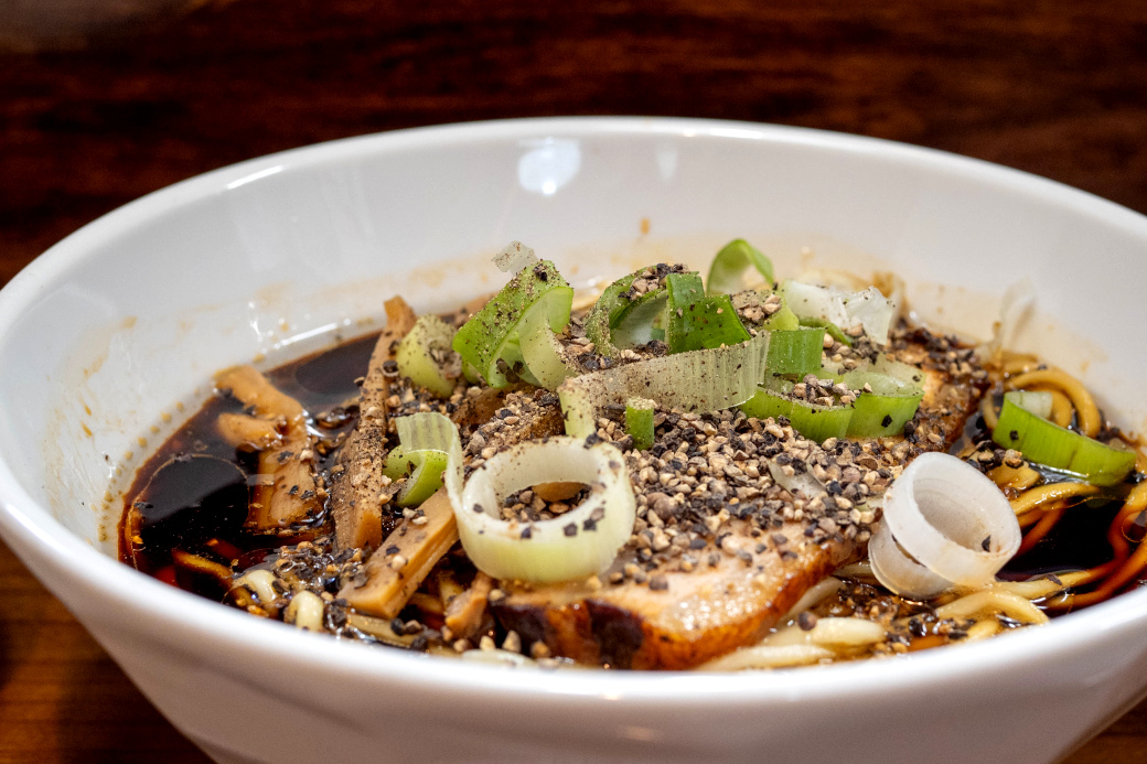 ※テイクアウト可能(別途容器代、あえ玉はテイクアウトできません) ※今回の限定は非常に手数が多く、提供にお時間がかかる場合があります。 また、レギュラーメニューと同時調理ができないため、グループなどでレギュラーと一緒にご注文いただいてもお出しするタイミングがかなりずれます。 今週はドロドロ濃厚な味噌担々麺です! ドロドロですがほぼ味噌と胡麻の濃度なので重たくはありません! ライトな鶏白湯に鯖鰹の節ものをたっぷりきかせ、自家製辣油、自家製芝麻醤などを合わせてます。 味噌ダレは北海道味噌紅一点をベースに、いただきものの豊田枡塚豆みそをブレンドしてコクを出した無化調。 自分の芝麻醤は作る時の植物油を極端に減らしているので濃厚担々麺にしては油っこさや重たさはないと思います! 唐辛子の辛さは通常のシビカラの半分くらいですが、温度が高いのと現在のマイナーチェンジした辣油がかなり痺れるのでご希望に応じて調整します。 さらに今回は「シビカラあえ玉」もご用意しました。 こちらは卵細麺に自家製辣油、醤油ダレ、刻みチャーシュー、ネギがトッピングされています。 そのまま油そばとして、お酢や唐辛子をかけて、担々麺のスープにつけてつけ麺風(←オススメ!)、最後はスープにドボンと色々楽しめます! 個人的にはつけ麺にするならお酢は控えたほうがいいかなと感じました。 さらにさらに残った担々スープとひき肉をチーズご飯にかけて食べると最高です! 担々麺なので今回もフォロワー限定で「別皿ナッツ増し」もあります。こちらは数量限定、無くなり次第終了です。 ※ナッツ増しのご注文は券売機1番下の段にある「フォロワー」ボタンで50円でお願いします。売り切れの場合はボタンに×が点灯しています。 |
