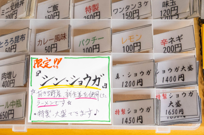 あきる野産新生姜をたっぷり使用した、もはや説明不要な一杯です まずは ・醤油、塩選べます ・特製、大盛OK ※「冷やし変更」はまだできません 1ケ月はご提供する予定です♪ |