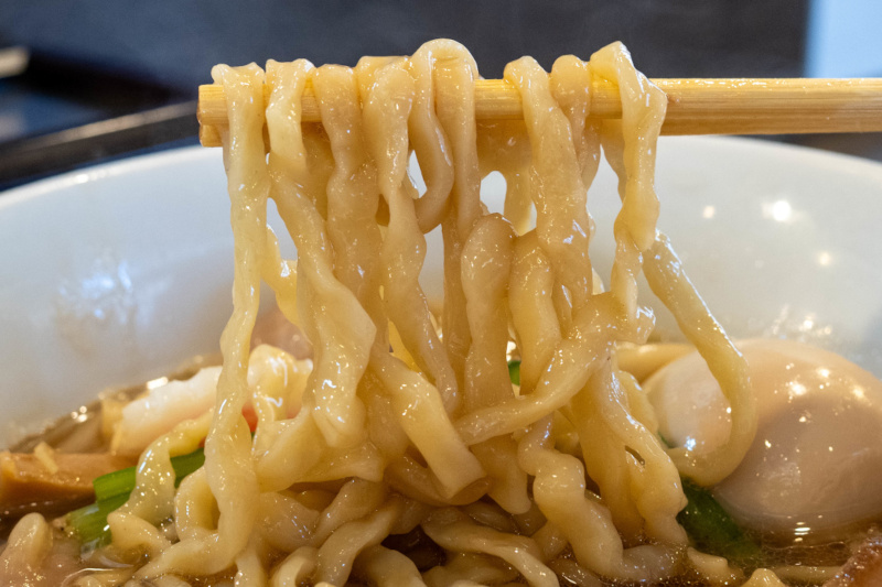 真昆布、羅臼昆布、かつお節、さば節、煮干しなどの乾物も国産のみを厳選し、九十九里の地はまぐりの出汁を合わせた、うまみ調味料不使用のトリブルスープです。 《麺》 細麺 … らーめんに使用している細麺は、北海道産小麦粉「春よ恋」と「タノカオリ」をブレンドした低加水の自家製麺です。ぱつっとした食感をお楽しみください。