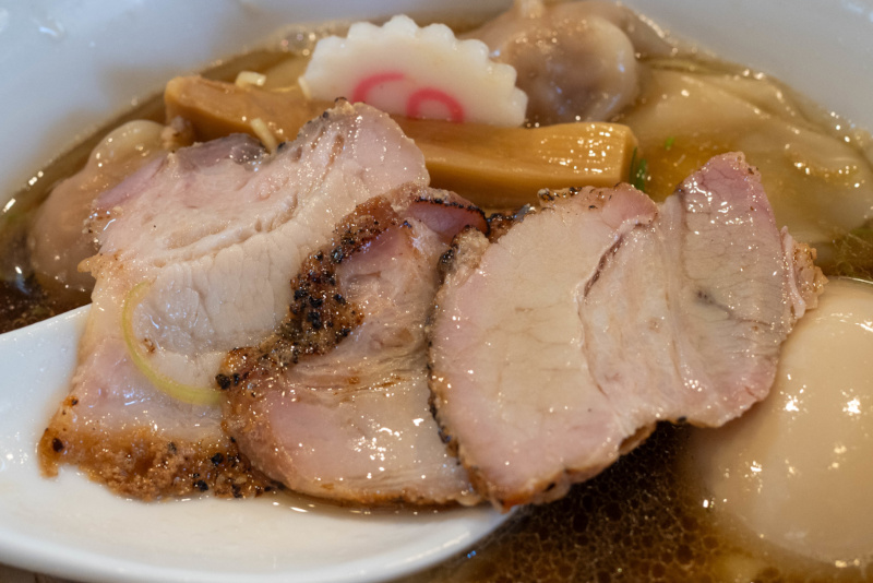 チャーシューはバラ肉で、柔らかくてジューシー。 |