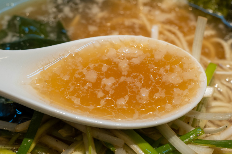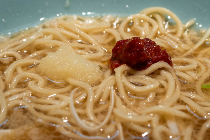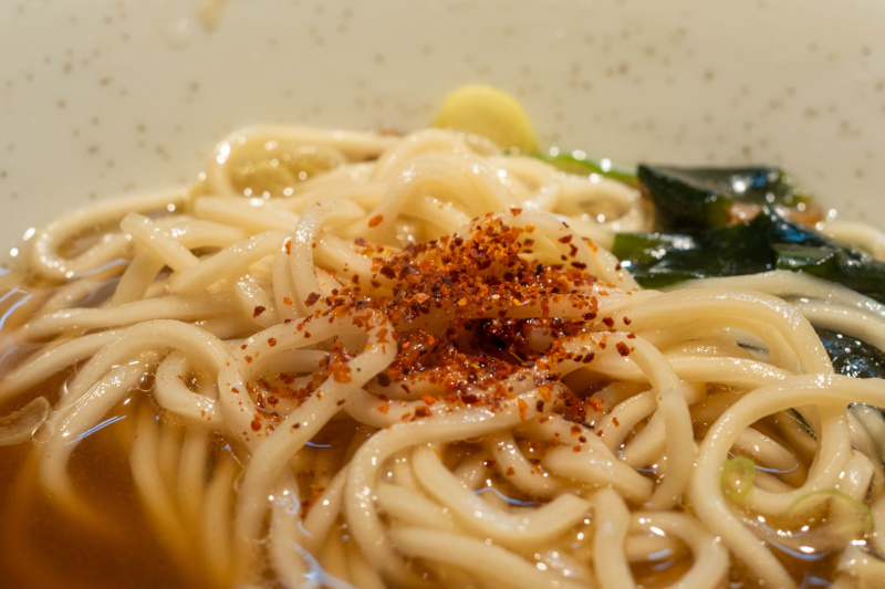 (限定) 煮干しと昆布のわかめ中華そば [2026/3/7] ¥1000 2026/3/7からの 3月限定メニュー 熱々の透き通った醤油スープは、立ち上がる湯気と共にどこか懐かしい香りを運んでくる。 煮干しと昆布のダシ感は決して突出せず、穏やかでバランスを重視した、じんわりと体に染み入るような優しい味わい。 表面を覆う油は少なめで、スープの素朴な風味が真っ直ぐに伝わる昔風の趣がある。 自家製の細麺は軽くウェーブがかり、適度な硬さを残した茹で上げが心地よい。 少しボソッとした食感が、優しく穏やかなスープと絶妙に響き合う。 添えられたナルトと共に素朴な懐かしさをより鮮明にしている。 たっぷりと盛り付けられたわかめからは、次第に豊かな磯感が染み出し、食べ進めるごとにスープの表情を徐々に変えていく。 チャーシューの代わりのバラ肉は、噛み締めるほどに肉の旨味が溢れ、スープにいっそうの深みを添えている。 メンマは平打ちの濃い色調で、コリッとした快い食感と風味がアクセントとして利いている。 後半は卓上の一味唐辛子をパラリ。ピリッと引き締まった味わいへと変化し、最後の一滴まで飽きさせない。 確かな満足感と安らぎを与えてくれる、春を待つ季節にふさわしい、心まで温まる限定麺。 |