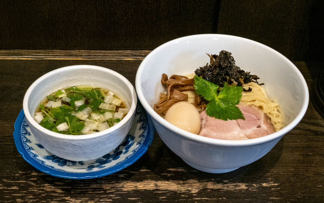 麺をつけ汁に漬けて |
