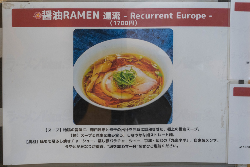 言わずと知れた“天才ラーメン一家”の長兄として生まれた大西芳実店主。 約20年にわたりラーメン界のトップランナーとして「驚心動魄=魂を震わす一杯」を追求してきた。 今回は、10月のヨーロッパツアーで得たインスピレーションをもとにスープを再構築。 大西店主ならではの“哲学”と“科学”が完璧に融合した最新作と、日替わり限定麺を提供する。 皆様の御来店(御雷店)をお待ちしております。 醤油RAMEN 還流 - Recurrent Europe- 【スープ】 地鶏の旨味に、羅臼昆布と煮干の出汁を完璧に調和させた、極上の醤油スープ。