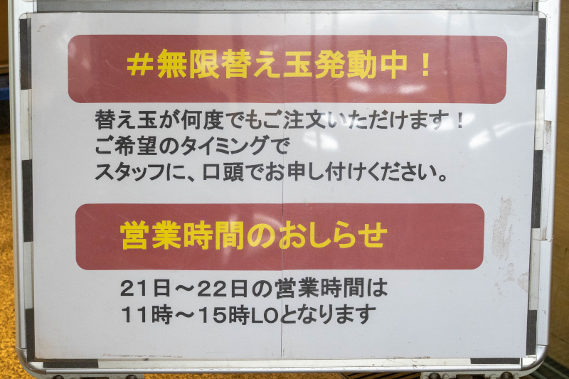 福岡の長浜地区で生まれ、クセがなくあっさりした豚骨スープと極細ストレート麺が特徴。 長浜・博多ラーメンの楽しみの一つである替え玉文化は、伸びやすい極細麺を、少量ずつ茹でて提供することで、伸びずに美味しく食べてもらうために生まれたと言われている。 なんと今回の出店では、無限に替え玉が可能。 ぜひ満足のゆくまで替え玉をし、スープの最後の一滴までお楽しみください。 |