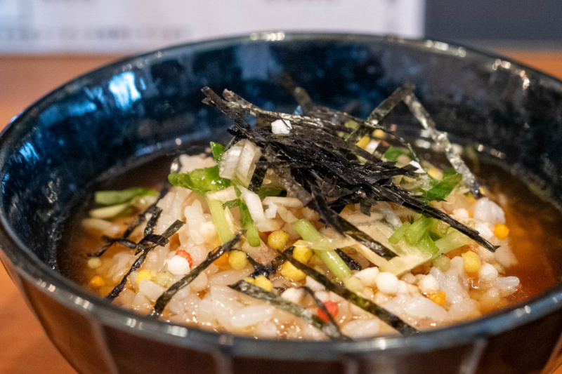 1日10食限定 『鈴ノ木専用粉』と『春よ恋 全粒粉』をブレンドした平打ち麺を冷水でしめ、伊吹いりこ、鯵煮干し、うるめ、北海道産羅臼昆布でとった冷たい煮干しスープを合わせた暑い日に食べたい清涼感たっぷりの冷やしラーメンです。 今年は国産ローストビーフと薬味(みょうが・大葉・三つ葉・白髪ねぎ)を乗せてご提供します。 ※出汁氷を使用しているのでスープは薄まることなく最後まで冷たく召し上がれます。 茶漬けセットがおすすめです。 麺量は180g(麺増量不可) ・茶漬けセット 300円 【内容】(ごはん・お漬物・五色あられ・海苔・山葵) ・国産ローストビーフ 1枚追加 300円 『夏季限定』 ・ひとくちビーフカレー 400円 たっぷりの国産牛すじと野菜をじっくり煮込み、 鶏白湯スープと合わせ辛さ控えめの食べやすいカレ ーに仕上げました。(インデラカレー使用) ※お茶碗サイズで提供するミニカレーです。 |