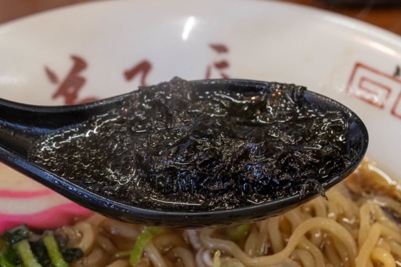 スープのこだわりをストレートに表現し、特製の細麺を合わせ、評価されてきました。 弟子屈味噌・辛味噌 (中太ちぢれ麺、函館産「刺身昆布」のせ)