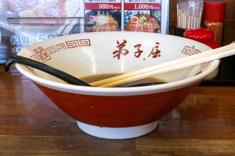 魚介しぼり醤油 [2023/10/8] 1000、魚介しぼり醤油チャーシュー 1200 弟子屈醤油 980、弟子屈醤油チャーシュー 1180 弟子屈味噌・辛味噌 1000(大辛 +50円)、焼肉味噌・焼肉辛味噌 1200 和だし醤油 [2025/9/24] 980 貝だし塩 [2025/9/24] 980 白湯塩 1000 レッドドラゴン 1100 大盛り +150円 バラビッグチャーシュー 1枚 200 肩ロースチャーシュー 2枚 200 味付け玉子・メンマ・ねぎ・磯海苔 150、コーンバター 180 行者にんにく餃子 5個 350・10個 600 大北海道手づくり餃子 3個 500 弟子屈 味噌ザンギ 1個 250・3個 700 チャーマヨのり巻き 350、山わさび巻き 350、ミニ豚丼 580 ライス 180・小ライス 120 サッポロクラシック生+行者にんにく餃子 5個 980 生ビール サッポロクラシック生 700、サッポロラガー 中瓶 800 サッポロプレミアム アルコールフリー 480 ペプシコーラ・オレンジジュース 350