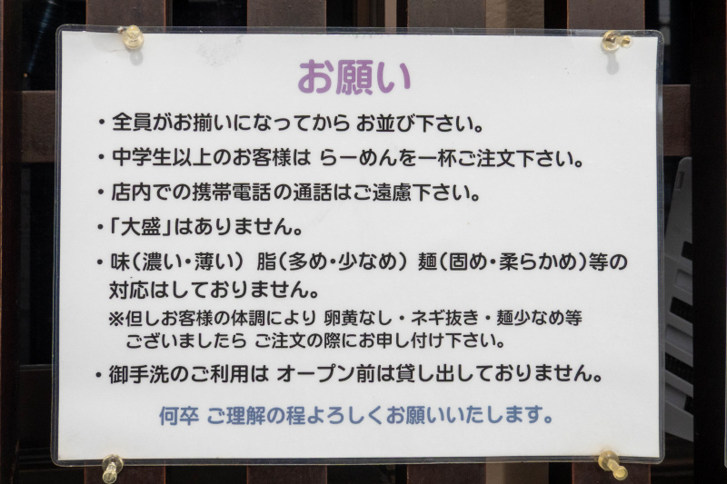 八王子小門町5-3 [地図] 電話番号非公開 11:00~15:00 (売り切れ終了) 月曜休 ※ ファストパスの予約が可能 [TableCheck] ・月曜 22:00から、翌週の予約ができる ・予約可能な時間は 10:30~14:30までの30分刻み ・予約可能な席は カウンタ2席・テーブル1席(2名分) カウンタ 4席、テーブル 2席×3 口頭による注文、前払い ⇒ 券売機による食券制に変わりました 駐車場なし、至近にコインPあり 2024/5/15 オープン 店主は、三井田浩一氏 大和ラーメン学校(大和製作所)出身 化学調味料未使用、自家製麺