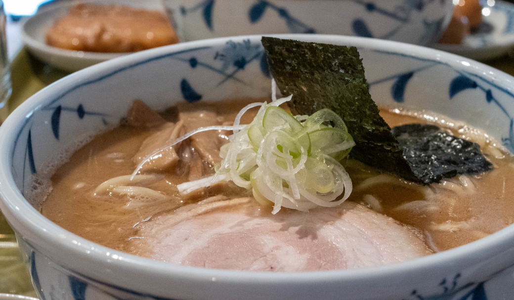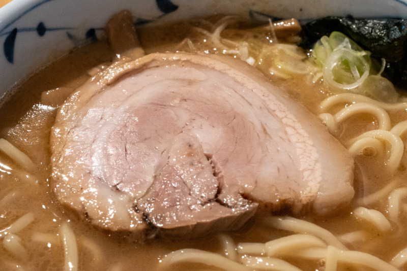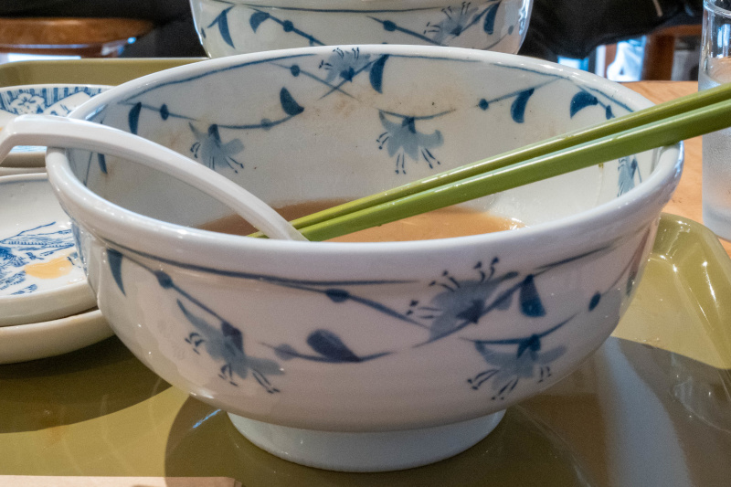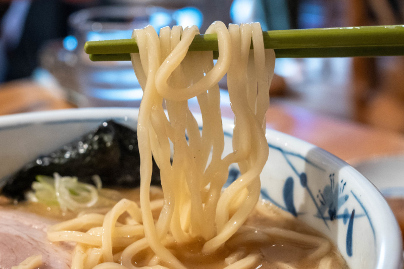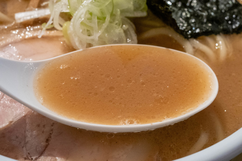 中華そば (+ぽるこ・味玉うずら) [2026/3/27] ¥1100+¥350+¥150 スープは、動物系の厚みに煮干しや鰹節などの和風乾物を合わせた、重層的なWスープ。 表面に薄く膜が張るほどコラーゲンが溶け出しており、素材の濃密な旨味がダイレクトに伝わってくる。 「青葉」に代表される不朽の豚骨魚介スタイルを彷彿とさせるが、無化調で仕上げられたその味わいは驚くほど雑味がない。 醤油の芳醇な風味と甘みが重なり、濃厚さと軽やかな後味を見事に両立させている。 トッピングの海苔がスープに浸ることで広がる香ばしい磯の風味も、このWスープの良きアクセントだ。 麺はニップン北海道産小麦100%に「浅野さん家の卵」を練り込んだ、自家製の中太ストレート。 なめらかな麺肌ともちっとした弾力があり、力強いスープとの馴染みも抜群。 麺量200gというしっかりとしたボリュームが、一杯の満足度を確かなものにしている。 具材も一つひとつに店主の哲学が宿る。 デフォルメのチャーシューは「下田さん家の豚」を使用した厚切りのバラロール。 脂の甘みと肉の旨味が口の中でバランスよく解け、素材の質の高さが際立つ。 熟成タイプのメンマは、コリッとした小気味よい歯切れとともに豊かな風味が鼻を抜け、長ネギの白い部分の小口切りが絶妙な清涼感を添えている。 さらに、主役を引き立てるオプションの存在が、この一杯の充足感をより確かなものにする。 「ぽるか」は、分厚くカットされた豚バラ肉を柔らかく煮込んだ、角煮に近い逸品。圧倒的なボリューム感がありながら、口の中で解れる肉の旨味はスープのコクをより深めてくれる。 また、「味玉うずら」は、褐色に染まった見た目通り味がしっかりと凝縮されており、口の中で弾けるような食感が、重厚な一杯の中で心地よい変化を付けてくれる。 暖簾やトレイ、箸に至るまで緑色系で統一された空間は、日の出町の自然に溶け込むような穏やかな空気感を纏っている。 王道のWスープを無化調・自家製麺で磨き上げ、さらに個性豊かな脇役たちが脇を固める。 素材選びから盛り付けに至るまで一切の妥協がなく、食べるほどに満足感が増していく一杯だ。 |