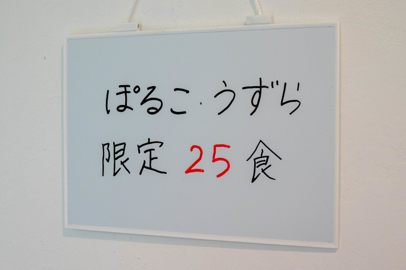 メニュー [2025/5/24] 中華そば 1100 生卵(浅野さん家の卵)・ゆで玉子(浅野さん家の卵)・辛味 ぴかんて 100、焼き海苔(高級有明海苔) 5枚 200 味玉うずら 4ヶ 150 (2026/2/23から提供) 支那竹皿(熟成めんま) 300 炙りいなり 2ヶ 300、ばら寿司(叉焼入り) 350 《限定メニュー》